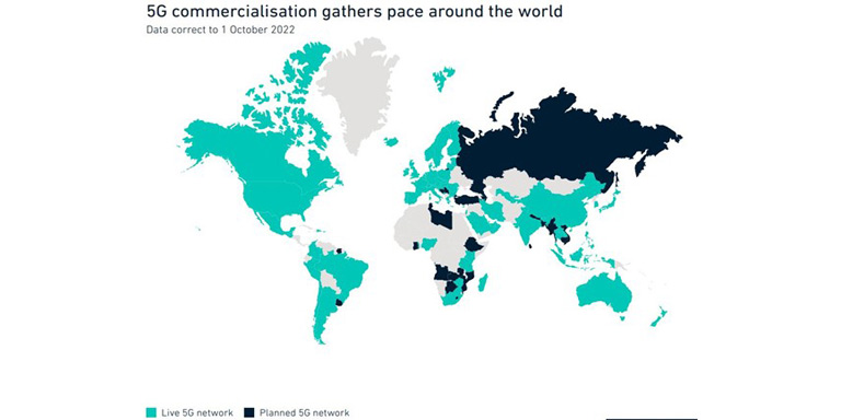 تجاریسازی 5G در سراسر جهان سرعت میگیرد (دادهها تا 1 اکتبر 2022 صحیح هستند)