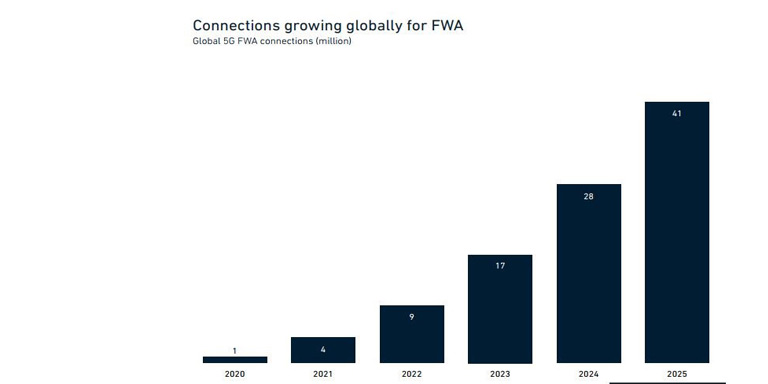 با این حال، طی چهار سال آینده، اتصالات FWA G5 بهطور میانگین حدود 90٪ در سال افزایش خواهد یافت (در 52 کشوری که سرویس FWA G5 را راهاندازی کرده یا اعلام کردهاند که راهاندازی میکنند). با آغاز راهاندازی بیشتر 5G در بازارهای در حال توسعه، فهرست بازارهای با رشد سریع گسترش خواهد یافت و اپراتورهای بیشتری از فرصت FWA G5 بهرهمند خواهند شد.